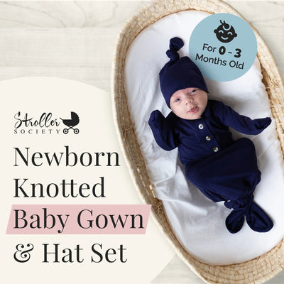 Newborn Knotted Gown and Hat Set Navy Blue, Newborn Clothes for Boys