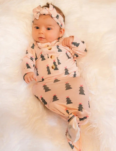 Newborn Baby Christmas Outfit - Newborn Baby Gowns - Pink Bow Pine