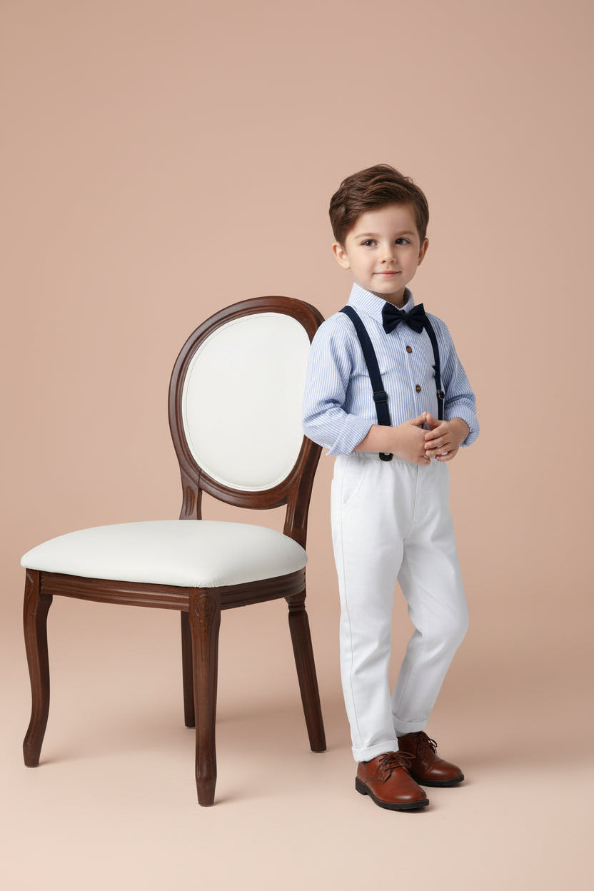 This three-piece striped ensemble combines a coordinated shirt, pants, and hat in a versatile design perfect for spring and autumn occasions. Crafted from cotton for breathability and comfort, the set features classic striped detailing with shoulder straps and a bow accent that adds refined polish. Long sleeves provide coverage across cooler seasons, while the cardigan-style construction offers layering flexibility. Available in soft light blue and pink colorways, this suit accommodates growing children with sizing from 70cm to 130cm in height. Ideal for formal events, family photos, or everyday styled wear, the matching pieces eliminate coordination guesswork while maintaining a polished, put-together appearance