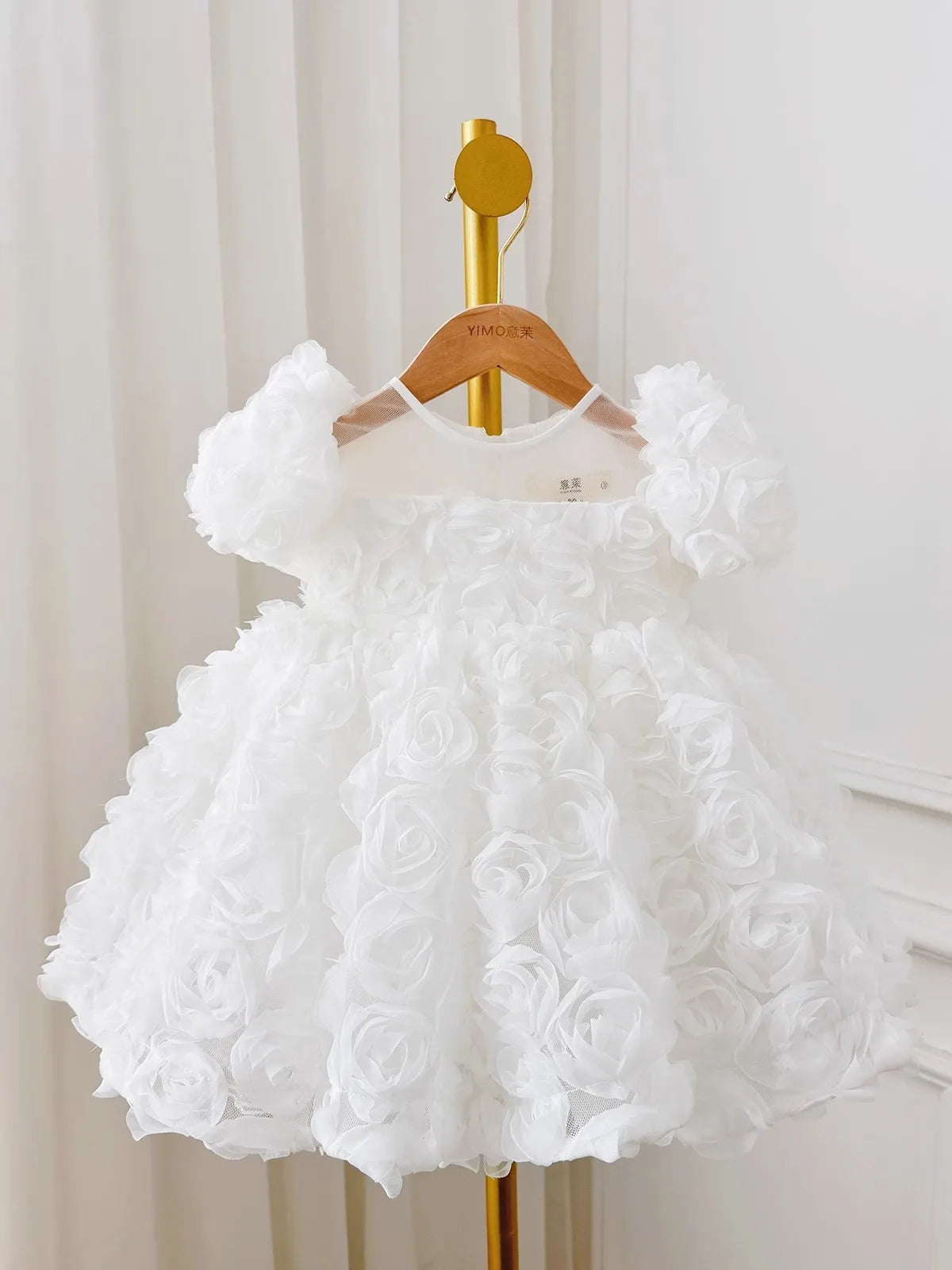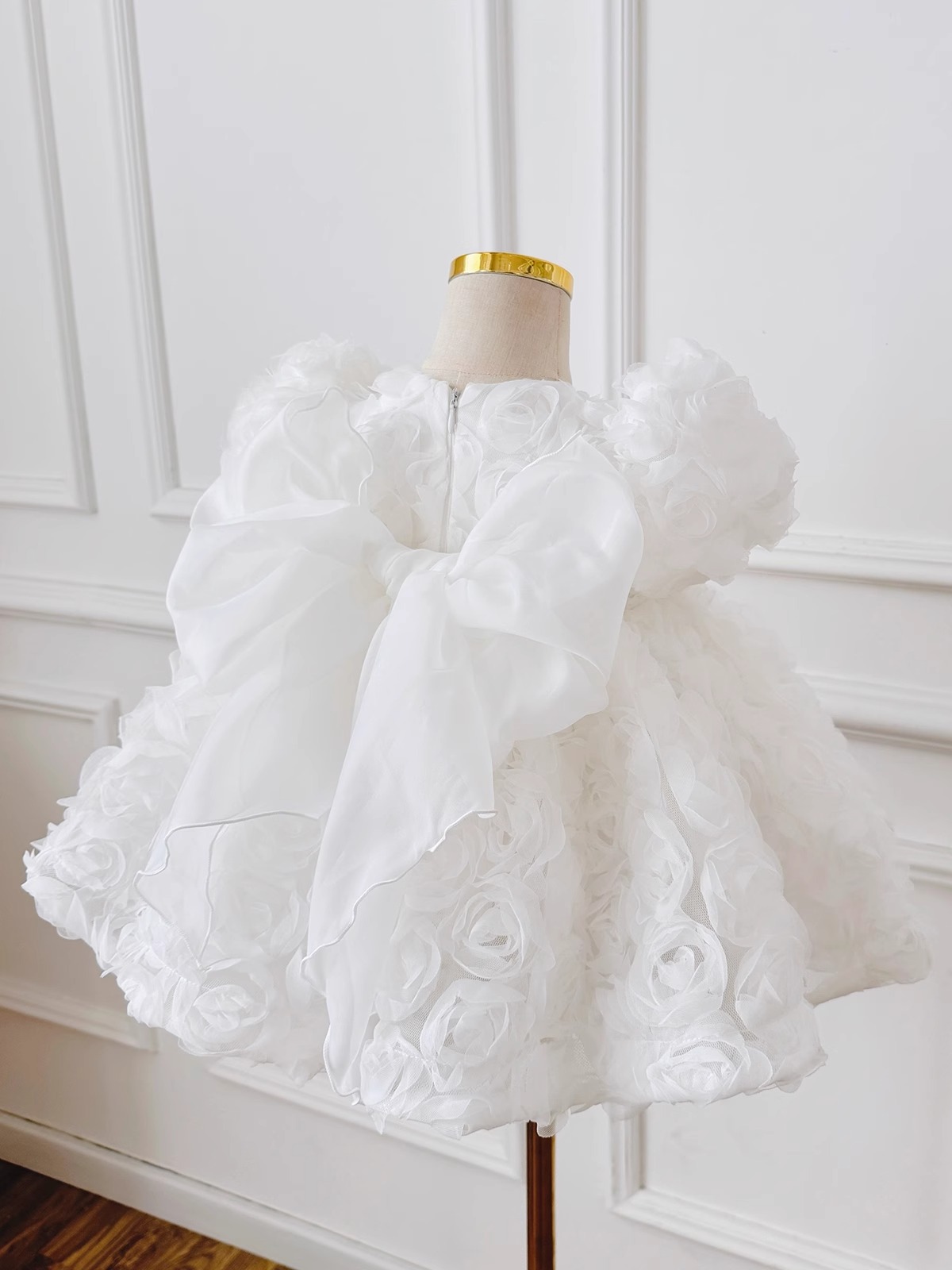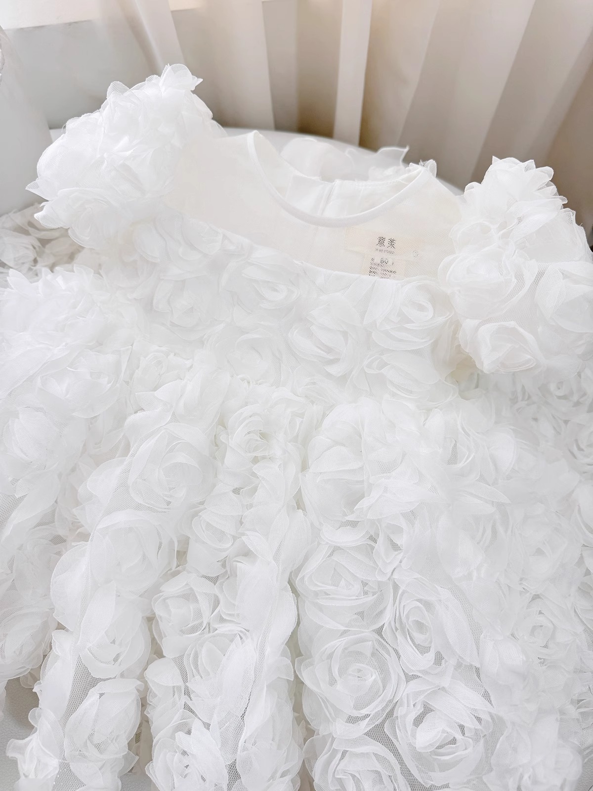 This elegant children's formal dress is perfect for flower girls, birthday parties, and special occasions. Designed with a princess-inspired style, it adds a refined touch to any event, making your little one shine as a host or during a piano performance. Its delicate details and graceful silhouette ensure comfort and charm throughout the day.