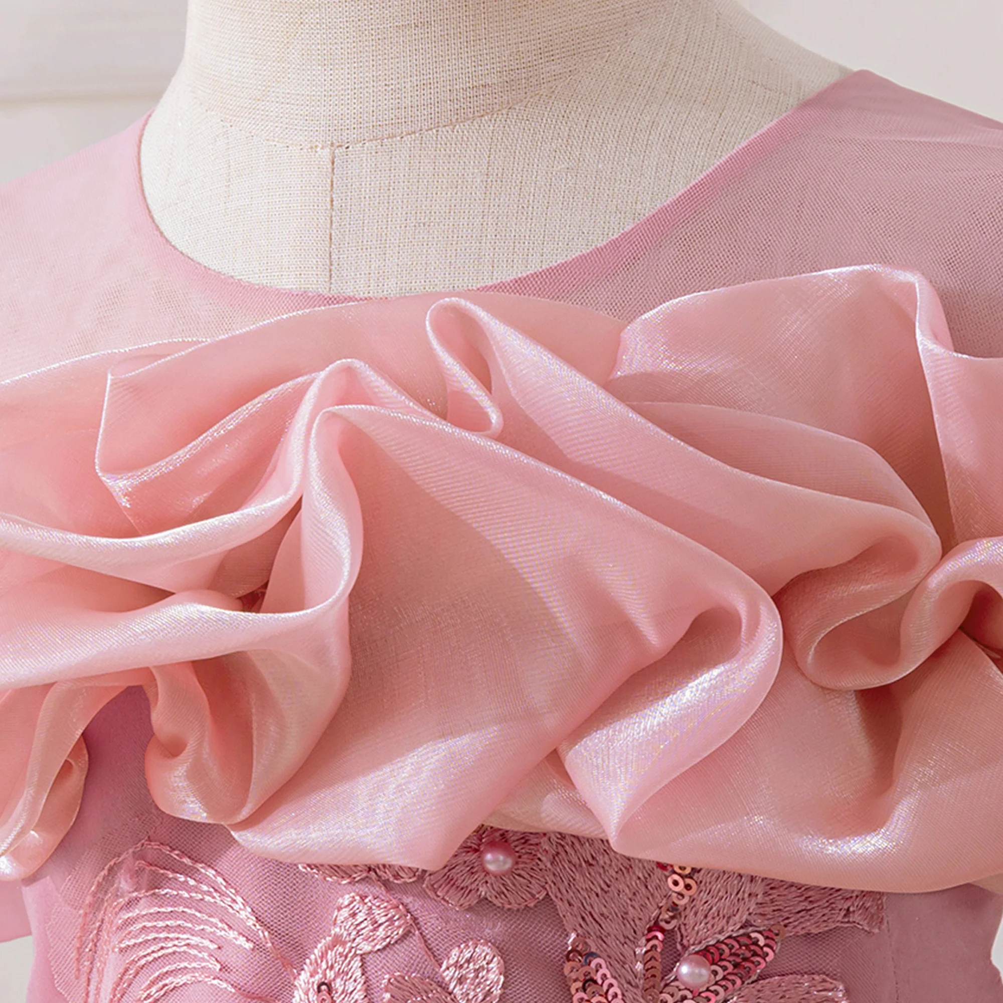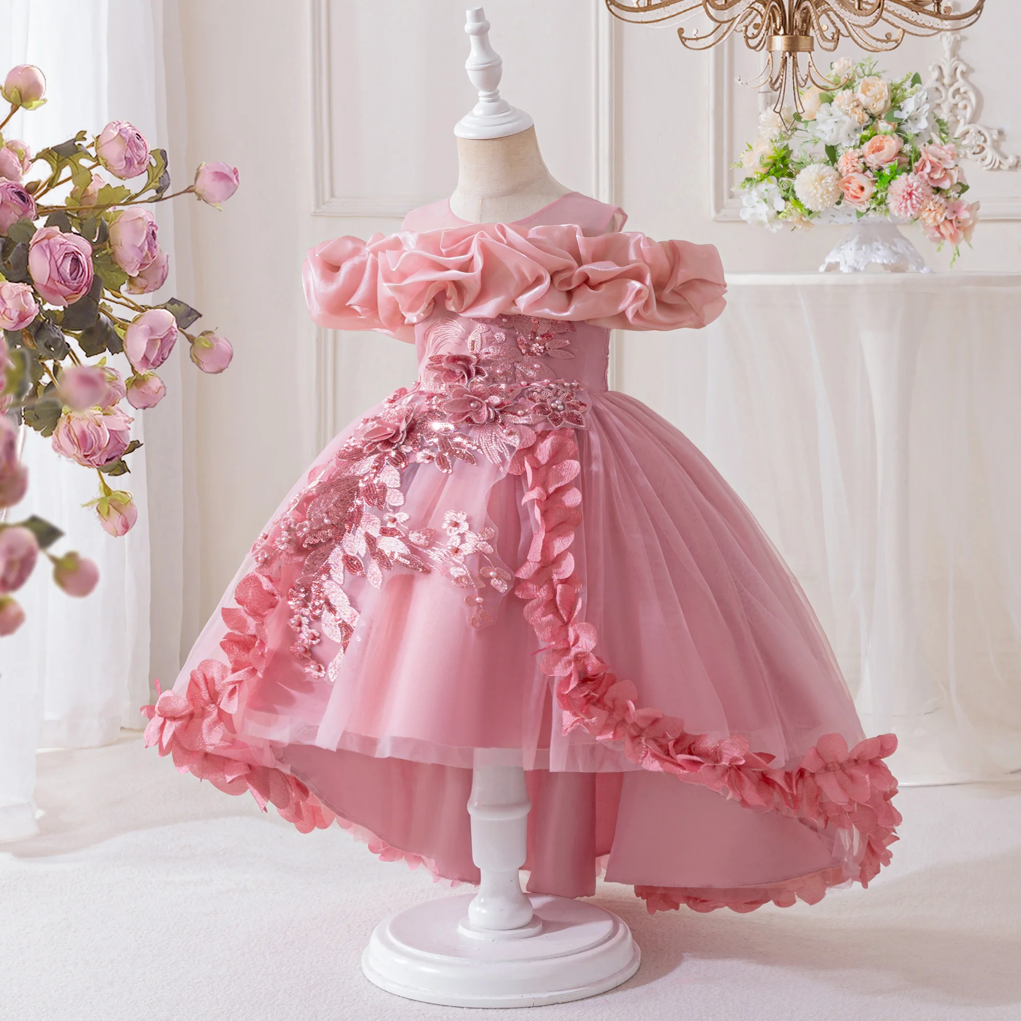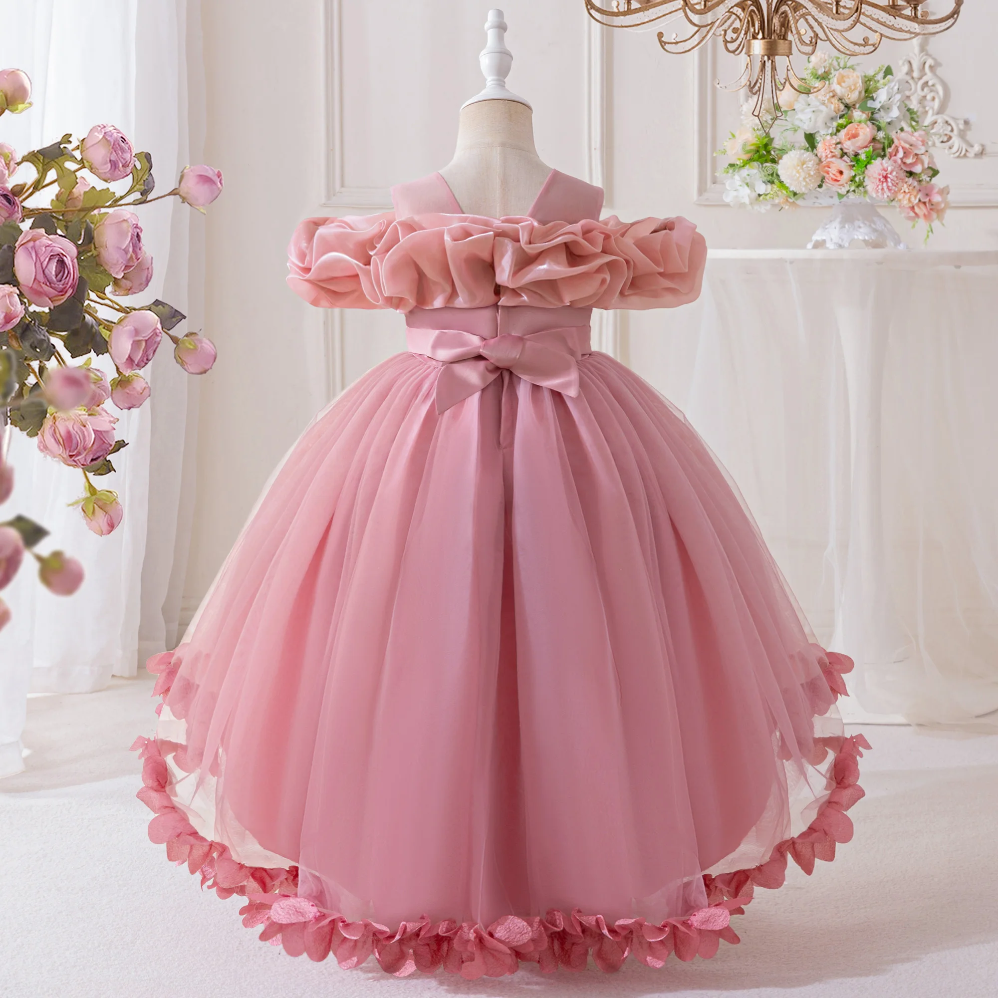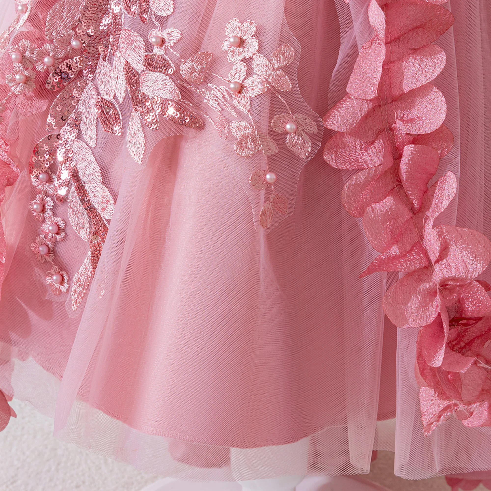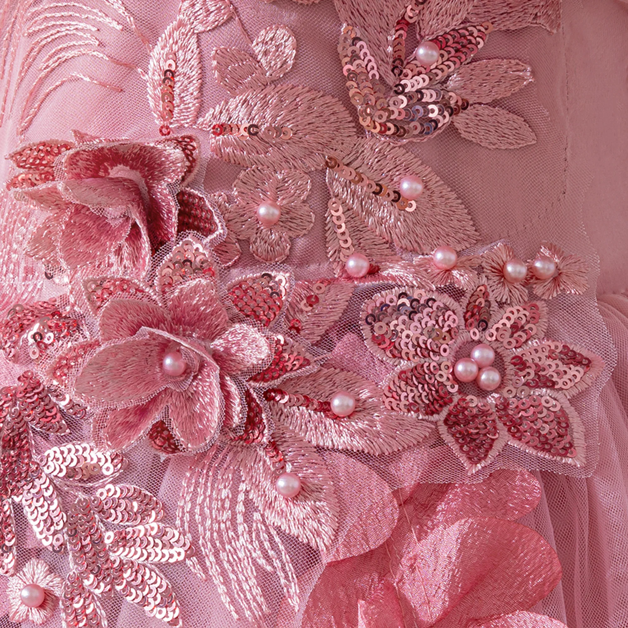Perfect for your 6-year-old's special moments, this refined girls' dress combines artistic floral embroidery with an elegant tail design. The shoulderless, sleeveless silhouette in blush pink features a timeless ball gown construction, expertly tailored for dance performances, piano recitals, and professional photography. Premium polyester and viscose fabrics with sequined embellishments deliver both durability and refined aesthetics. True-to-size fit ensures comfort through celebrations, pageants, weddings, and formal events. This European-American style piece showcases meticulous craftsmanship, making it an investment in your child's confidence and poise during life's most memorable occasions.
