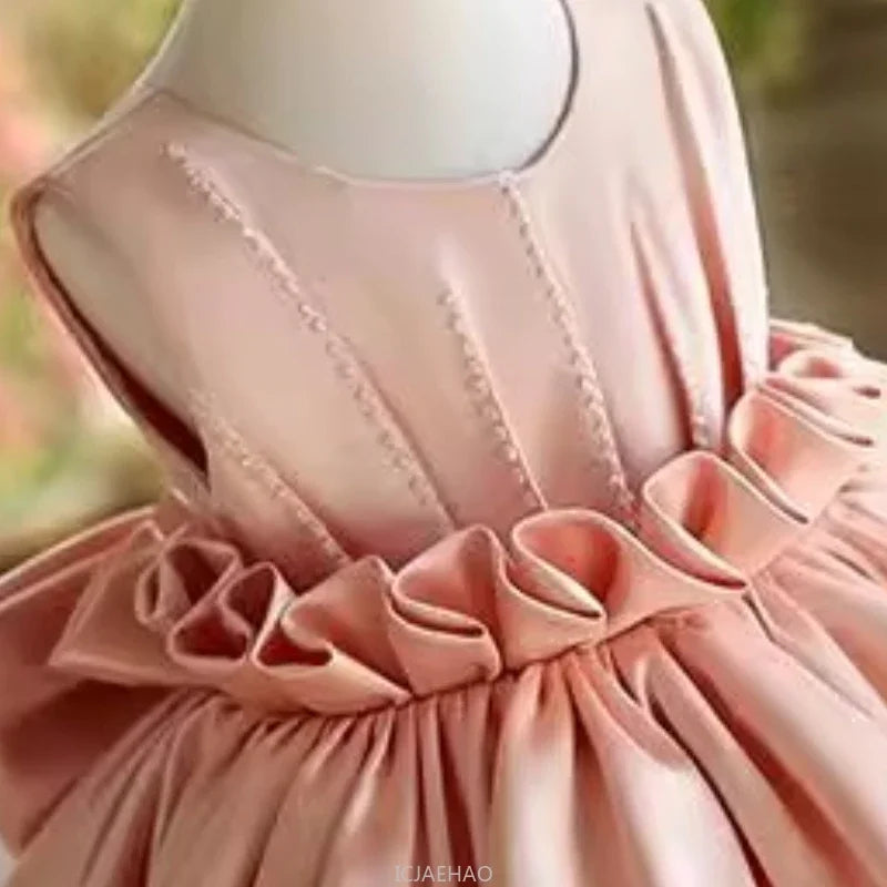 Girls Pink Princess Piano Performance Dress Flower Girl Wedding Birthday Host Gown FormalEvents Matching Kids Birthday Host