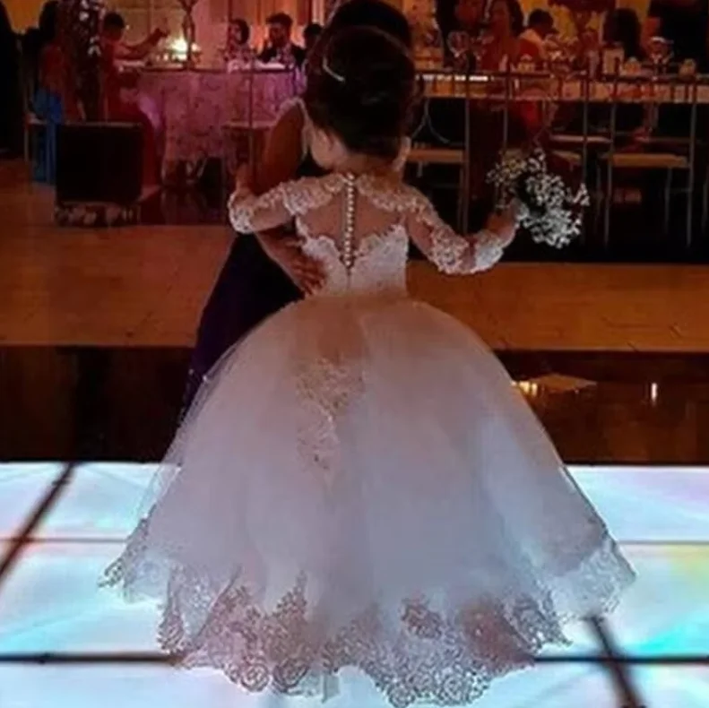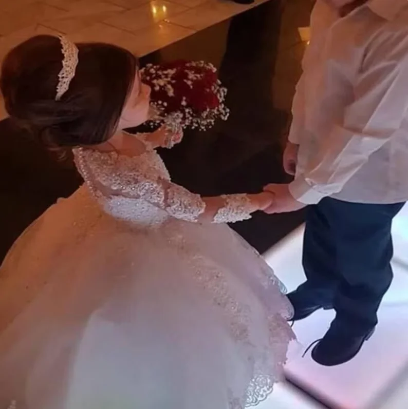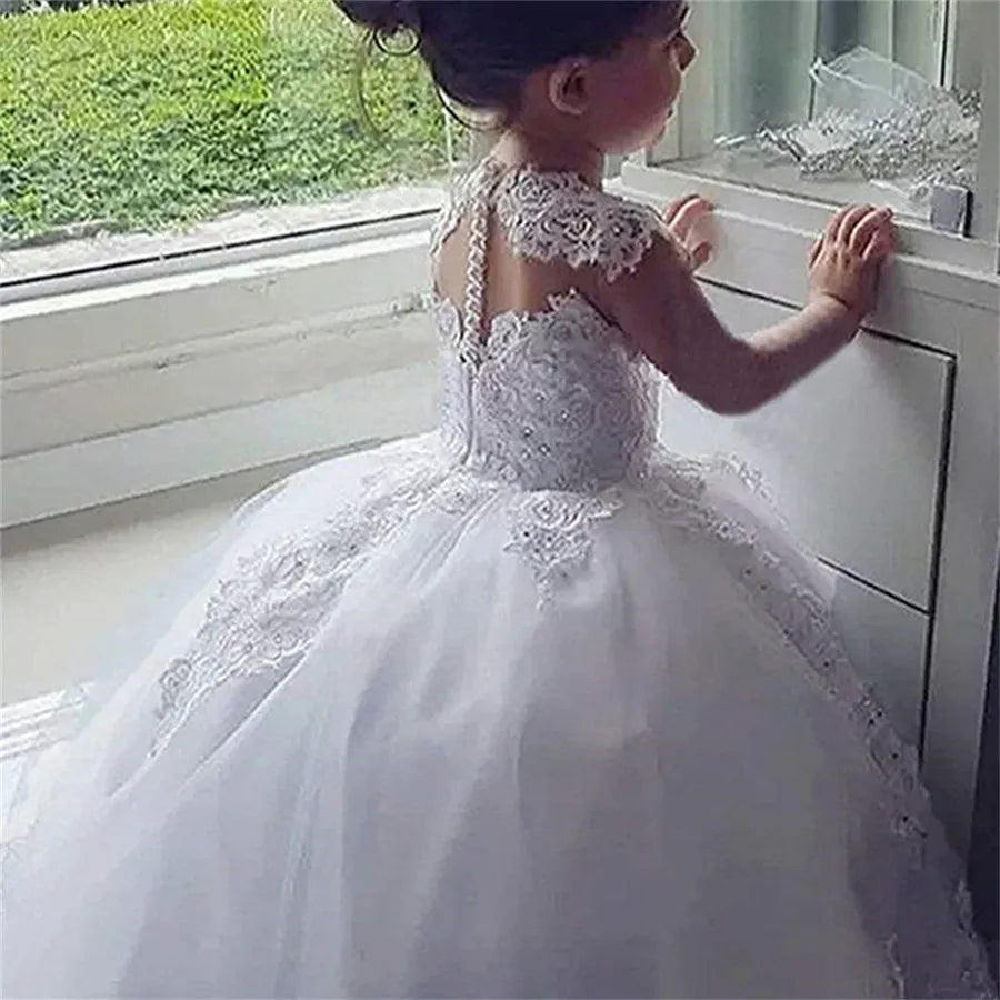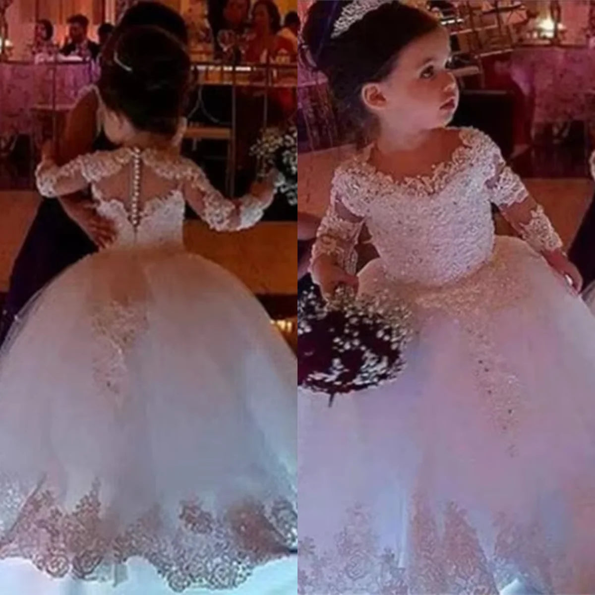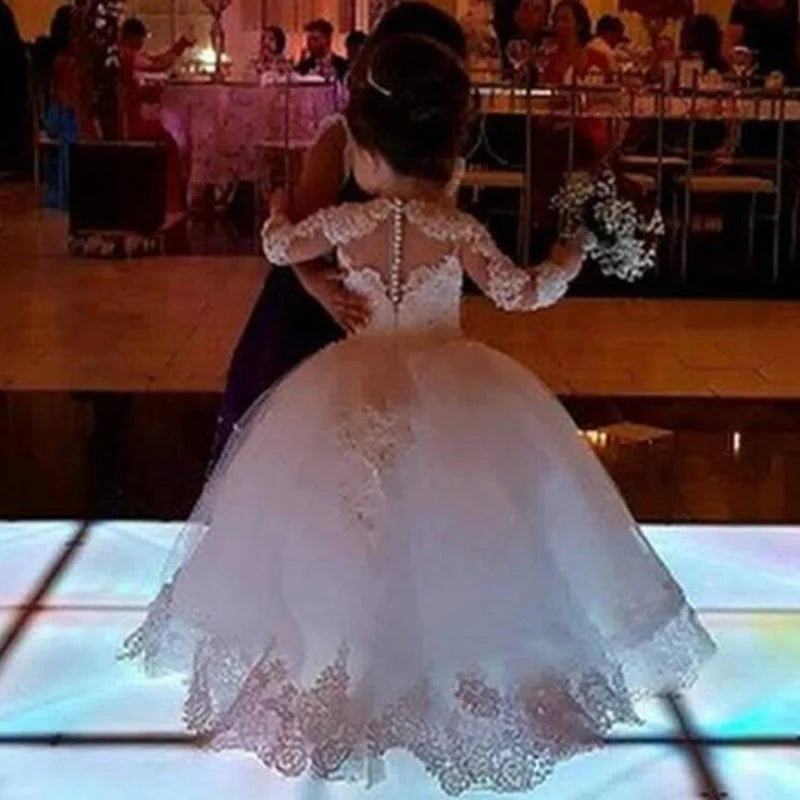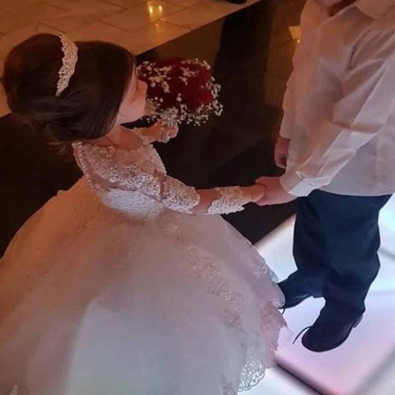 Elevate your daughter's special moment in this breathtaking long-sleeve princess gown. Crafted with intricate beaded appliqués that catch the light beautifully, this white communion dress commands attention with its bold, sophisticated design. The flowing silhouette and delicate embellishments create an unforgettable look that transforms any celebration into a fairy-tale moment. Perfect for first communions, flower girl duties, or milestone events, this stunning gown makes a daring statement while keeping your little one comfortable and radiant. A dress that refuses to blend in.