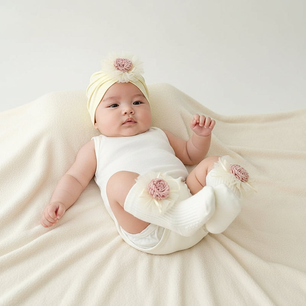 Marvie baby Beanie Cap Socks set