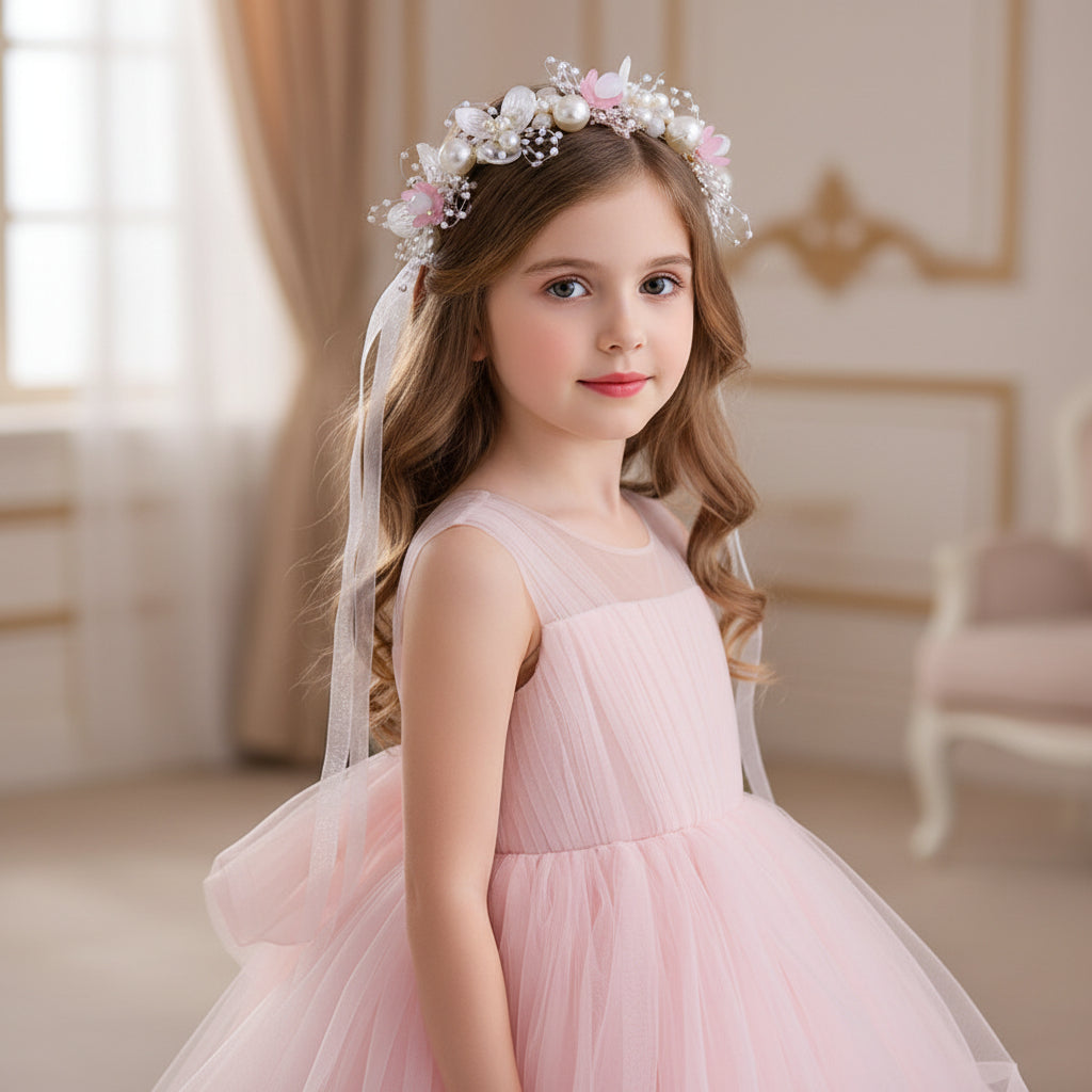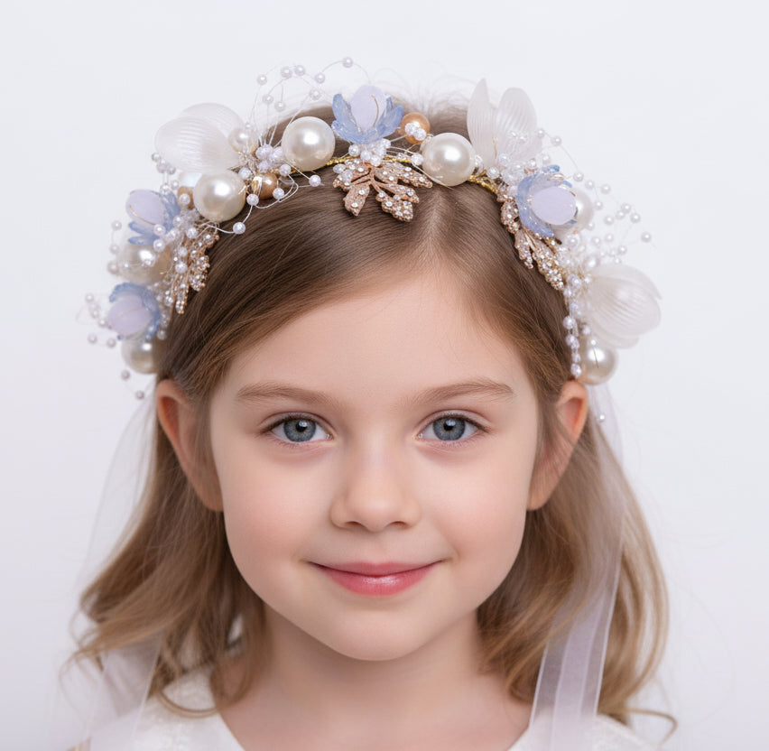 This hand-braided bridal headband showcases multicolor pearl flowers in a contemporary Korean design, offering timeless elegance for weddings and formal events. The tiara-style construction features premium pearl accents arranged in delicate floral patterns, creating a refined silhouette that enhances any bridal ensemble. Meticulously crafted with attention to detail, this headpiece balances ornate beauty with wearable sophistication. Perfect for brides seeking a distinctive accessory that combines traditional craftsmanship with modern aesthetic sensibility. One headband included.