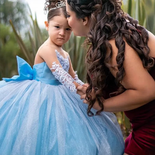 Crafted for young girls who love elegant silhouettes, this long bubble skirt features delicate lace mesh detailing and a graceful trailing design. Available in sophisticated colorways including skull, beech, story, yellow, and Typhoon, it suits girls taller than 2 feet. The princess-inspired grid pattern combines polyester construction with a soft polyester lining for comfort and durability. Perfect for formal occasions, pageants, and special events where refined style matters.