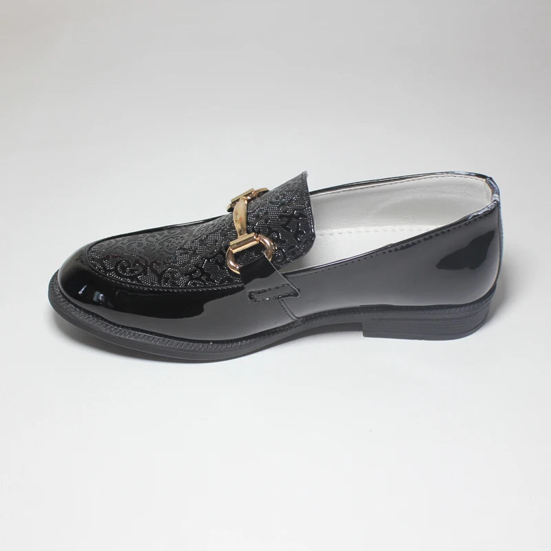 These boys' formal shoes combine sleek black patent leather with a slip-on design for ease and elegance. Featuring round toes and a comfortable fit, they are ideal for weddings, parties, and special occasions. Available in sizes 25 to 38, these performance children's oxfords offer both style and practicality for young wearers.