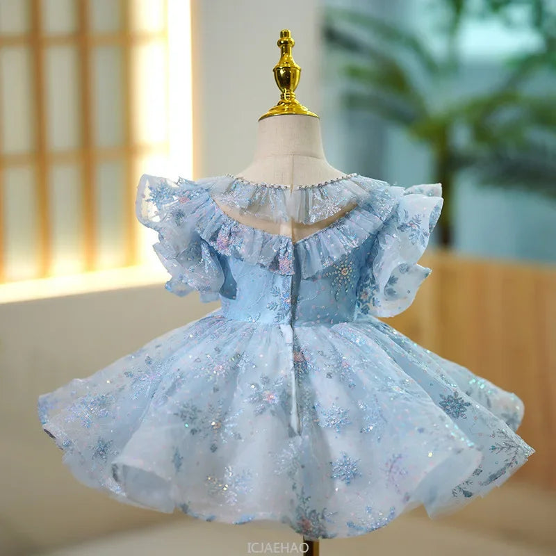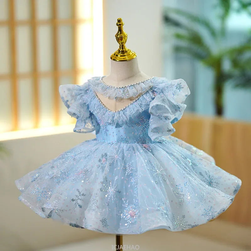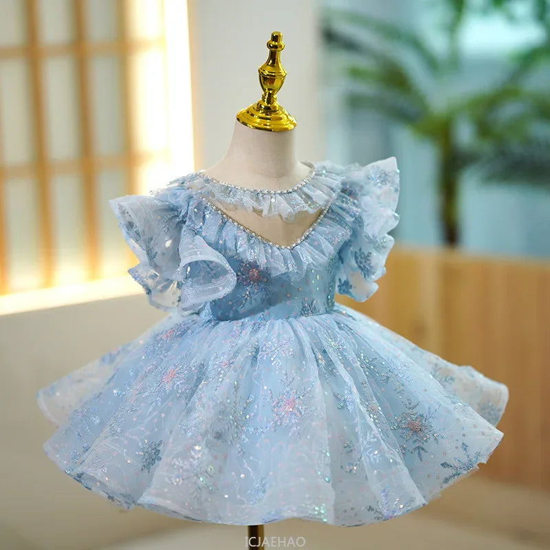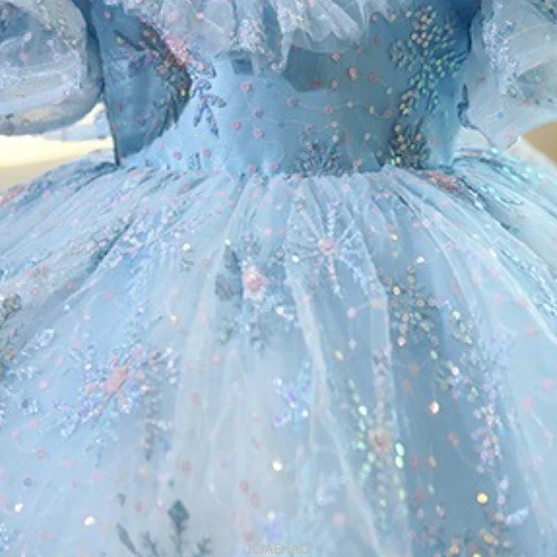 2025 Girls Birthday Dress Princess Party Gown Children Stage Performance Outfits Hostess Pageant Show Formal Blue Clothing