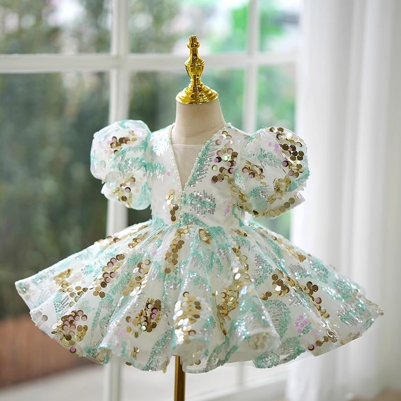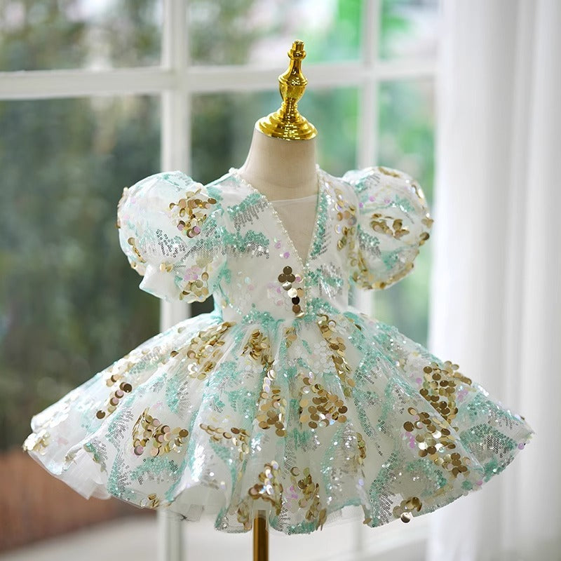 This enchanting green princess dress transforms any young girl into royalty with its bold, dramatic flair. Crafted from a polyester blend with a comfortable polyester lining, it's designed for heights ranging from 100cm to 160cm, making it perfect for growing fashionistas. The luxurious chemical fiber construction ensures durability through spring celebrations and special occasions. Each dress arrives as a complete set ready to captivate. Note: Asian sizing runs smaller—size up if between sizes. Allow for minor measurement variations and slight color differences from photos. Verify the size chart before purchasing for the perfect fit.
