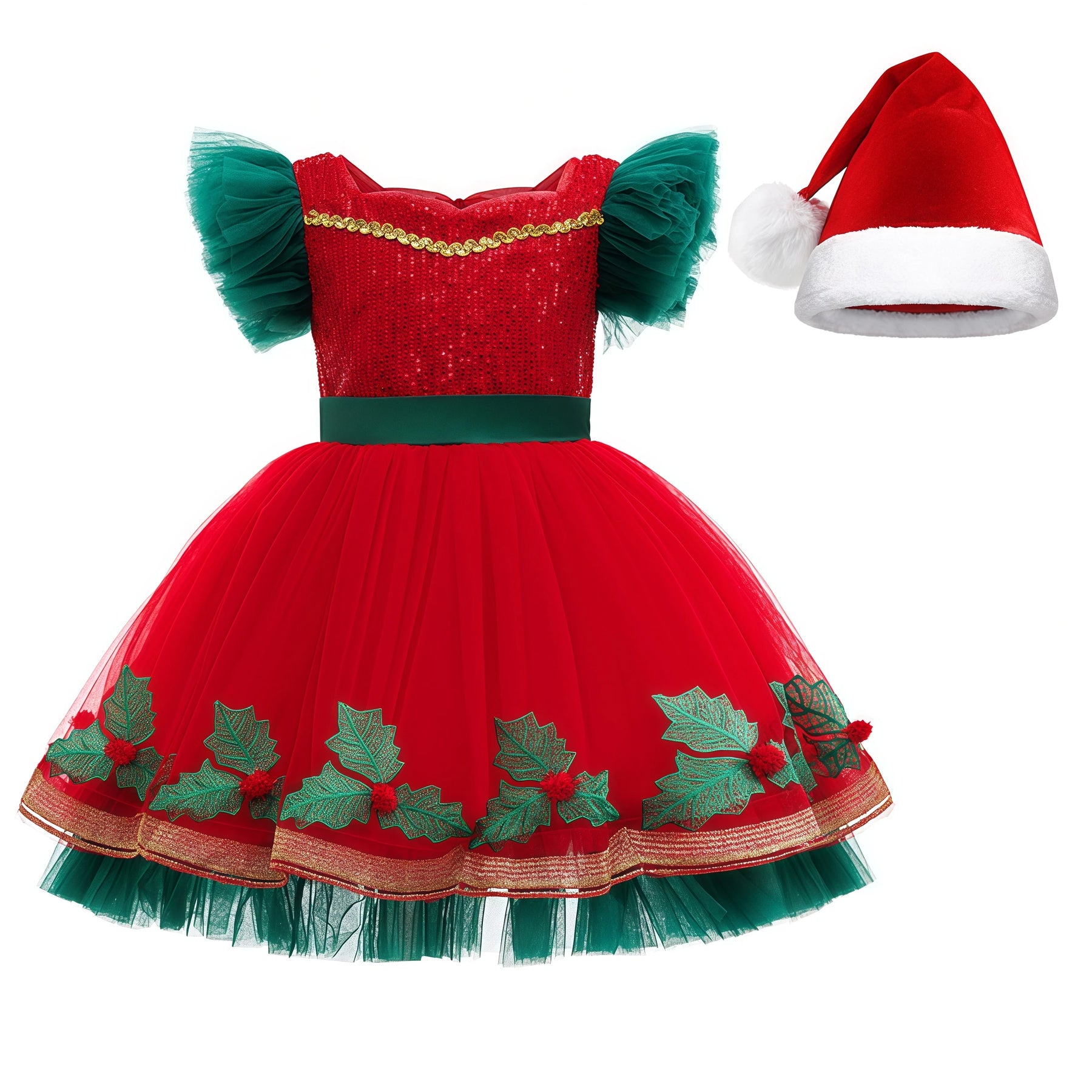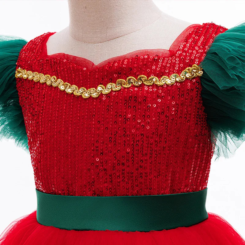 Make a bold statement this holiday season with our show-stopping red sequin tulle dress designed to turn heads at every celebration. Featuring shimmering sequins that catch the light with every twirl, luxurious tulle layers for dramatic movement, and a matching Santa hat to complete the festive look, this dress transforms any girl into the star of the party. Perfect for Christmas galas, holiday gatherings, birthday bashes, and evening events, it combines glamorous sophistication with playful holiday spirit. The eye-catching design ensures she'll stand out while the comfortable fit keeps her dancing all night long.