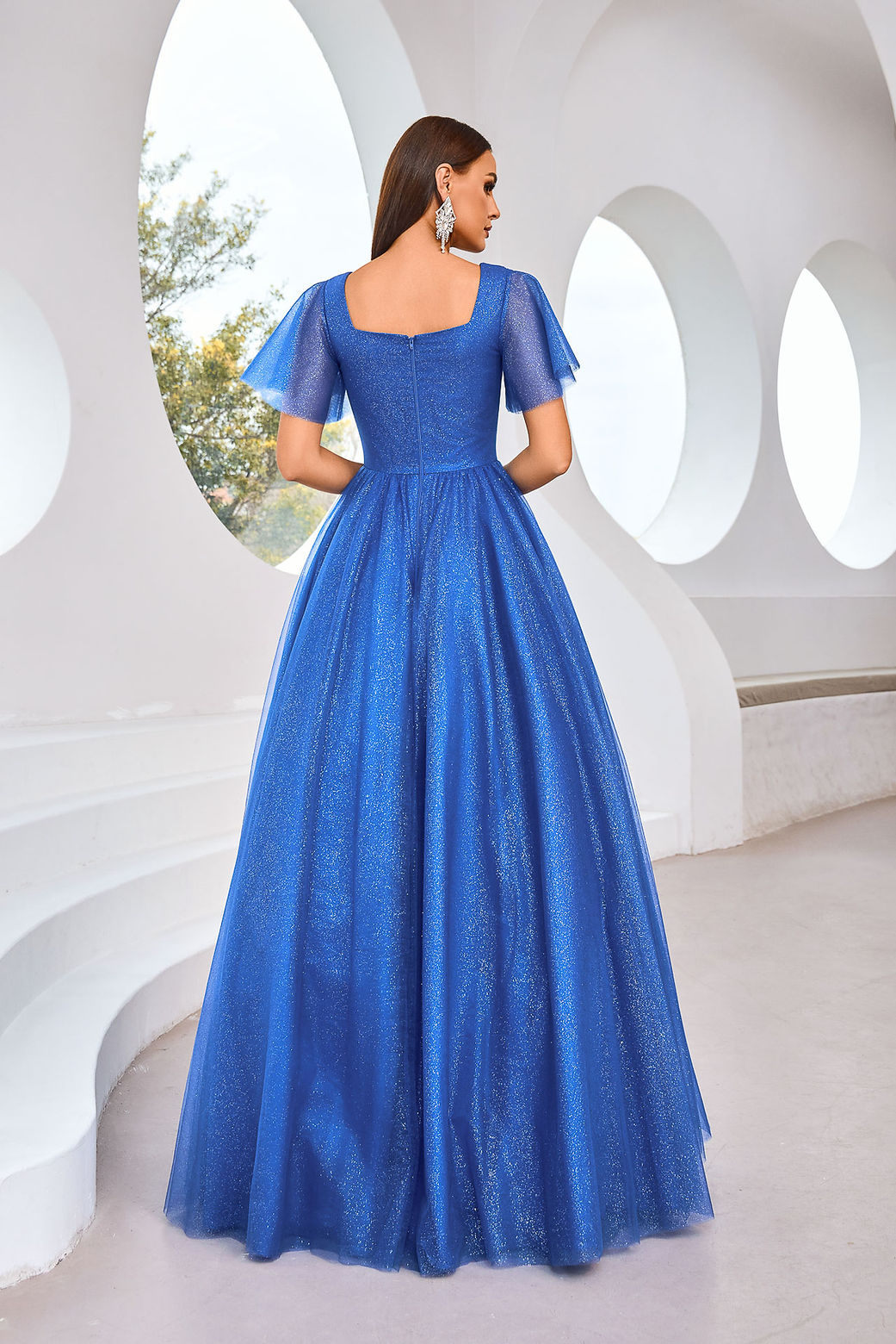 Elevate your elegance with J25002, a luxurious A-Line prom dress featuring a timeless square-neck design. The ball gown silhouette flatters every figure, while the rich emerald and royal hues add a regal touch. Perfect for making a statement at any event.