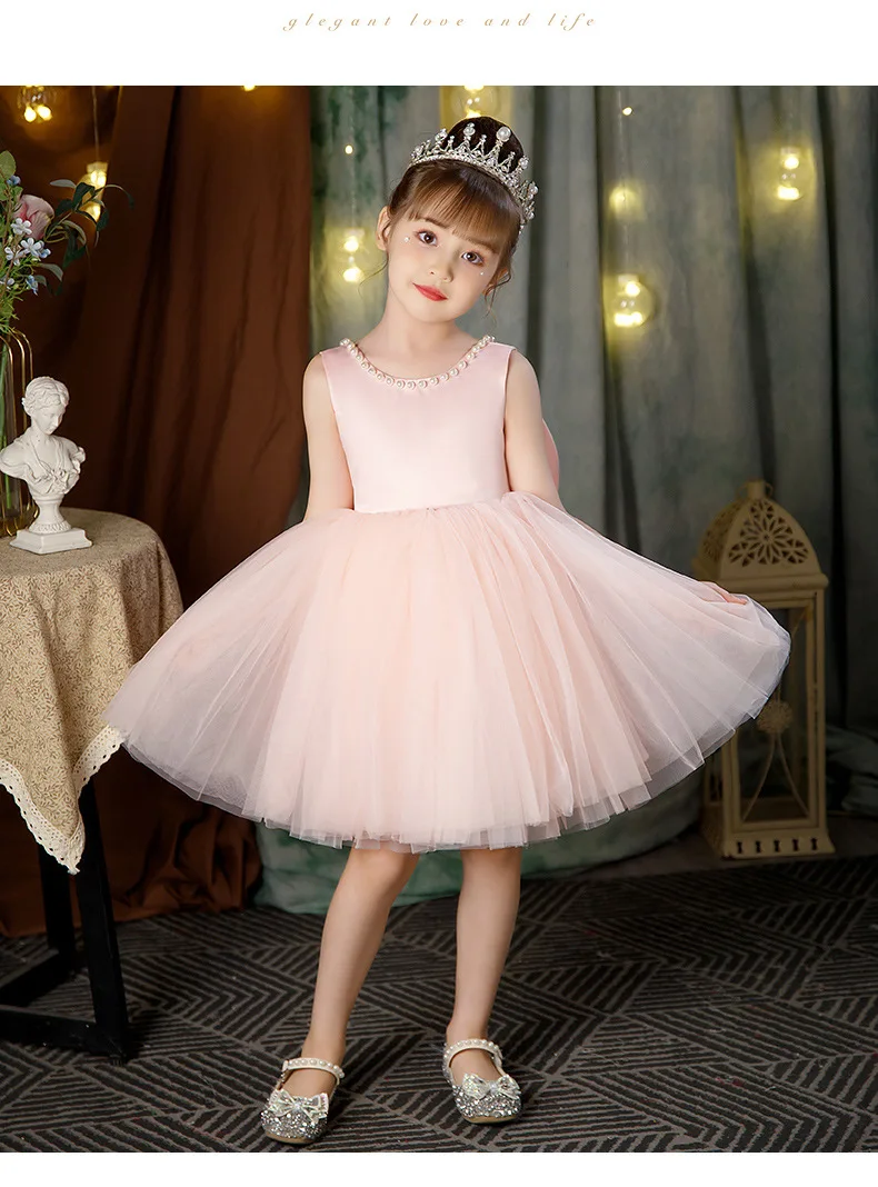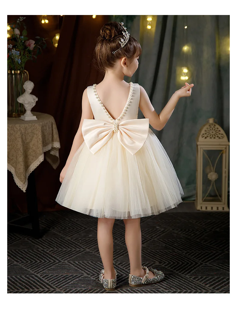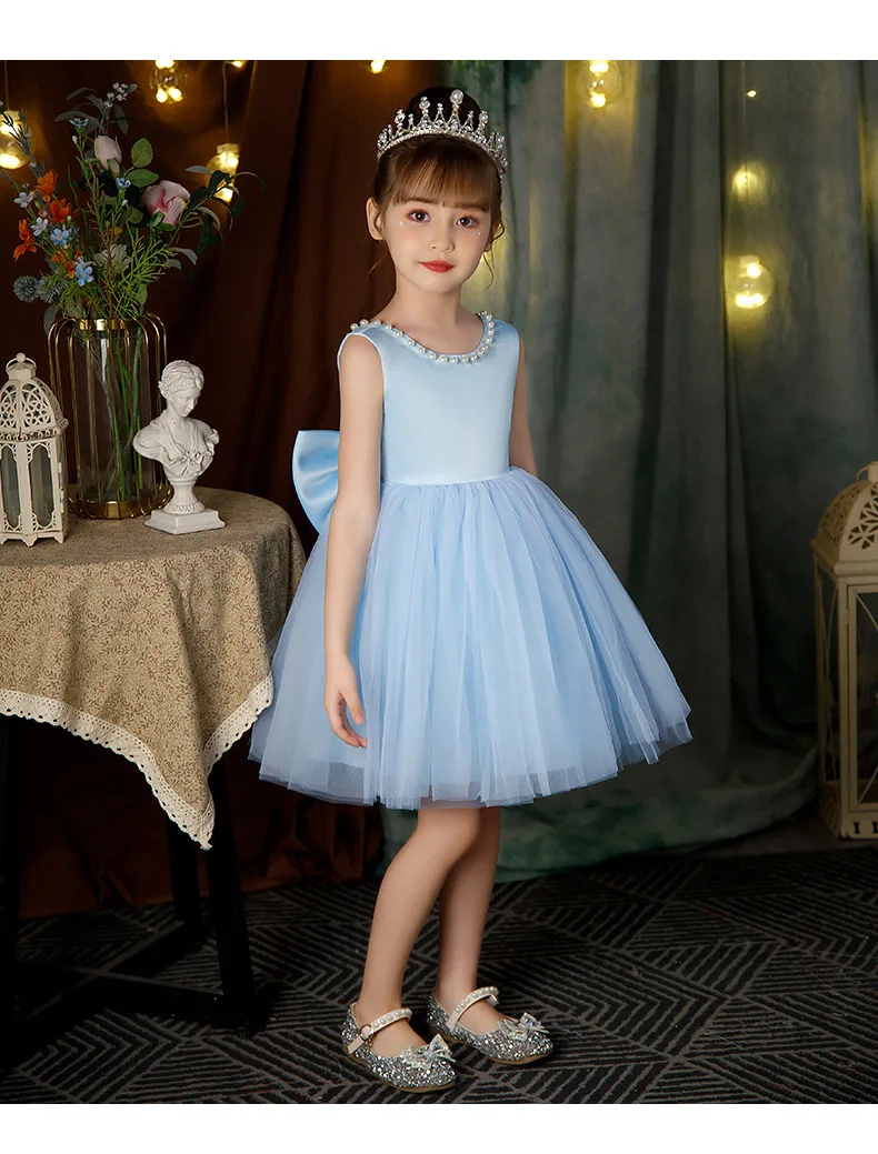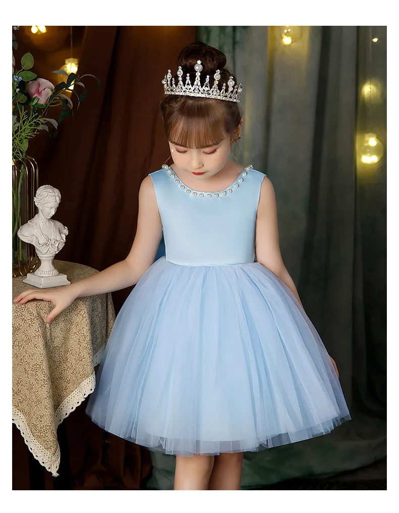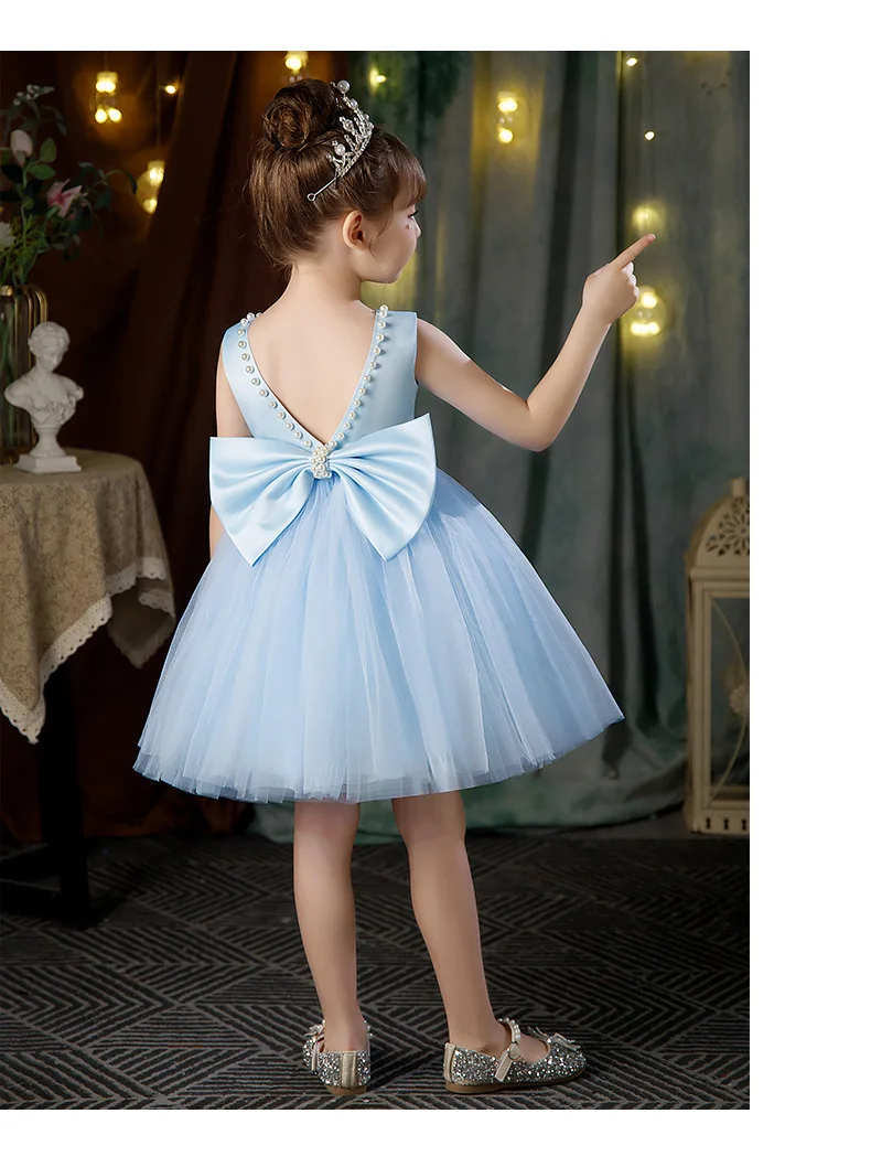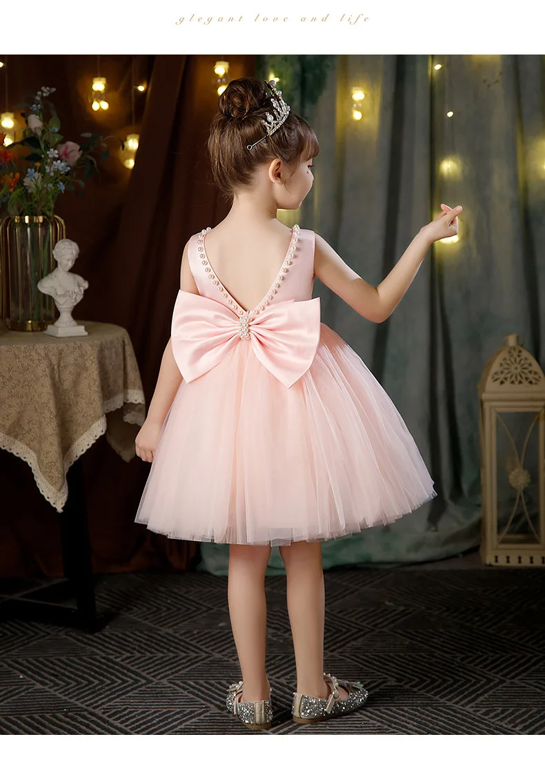 This elegant girls' princess dress features delicate summer tulle and a large bow, making it perfect for weddings, piano recitals, or hosting events. Designed for children aged 2 to 10 years, it combines comfort and style, ideal for special occasions that require a charming and sophisticated outfit.