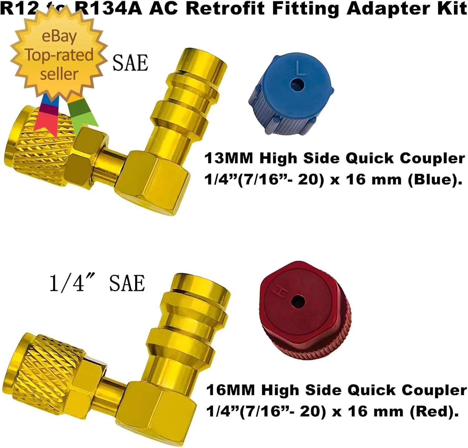 R12 to R134A AC Retrofit Fitting Adapter Kit, Brass R12 R22 to R134A High/Low Fi