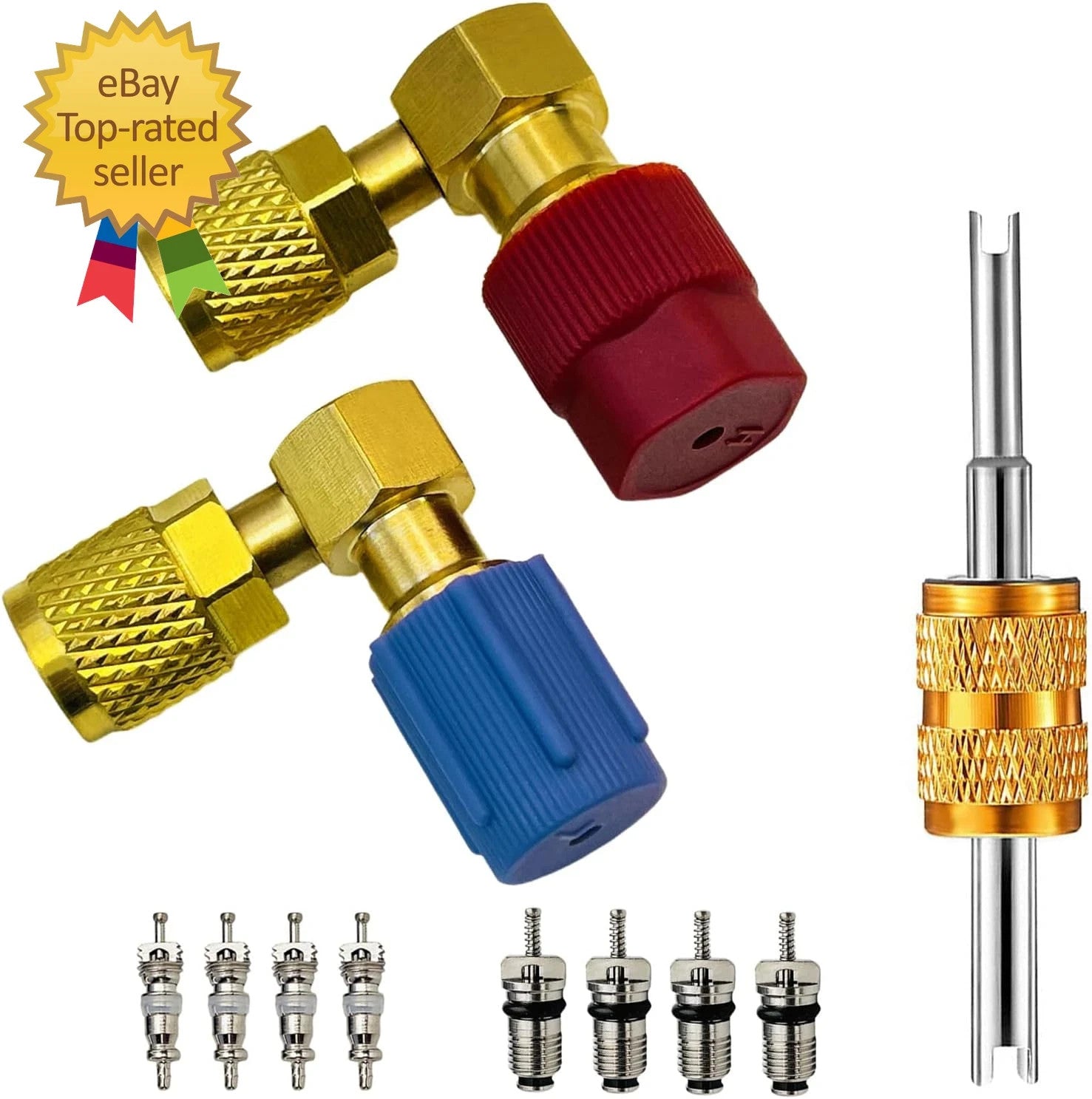 - Package Includes: 1 Pc x Blue Low Side Quick Coupler. 1 Pc x Red High Side Quick Coupler. 1 Pc x 13mm Blue Cap. 1 Pc x 16mm Red Cap,4Pcs x Valve Cores for R134A System. 4Pcs x Valve Cores for R12, R22 System. 1Pc x Valve Cores Tool.oning Seal Repair Kit
