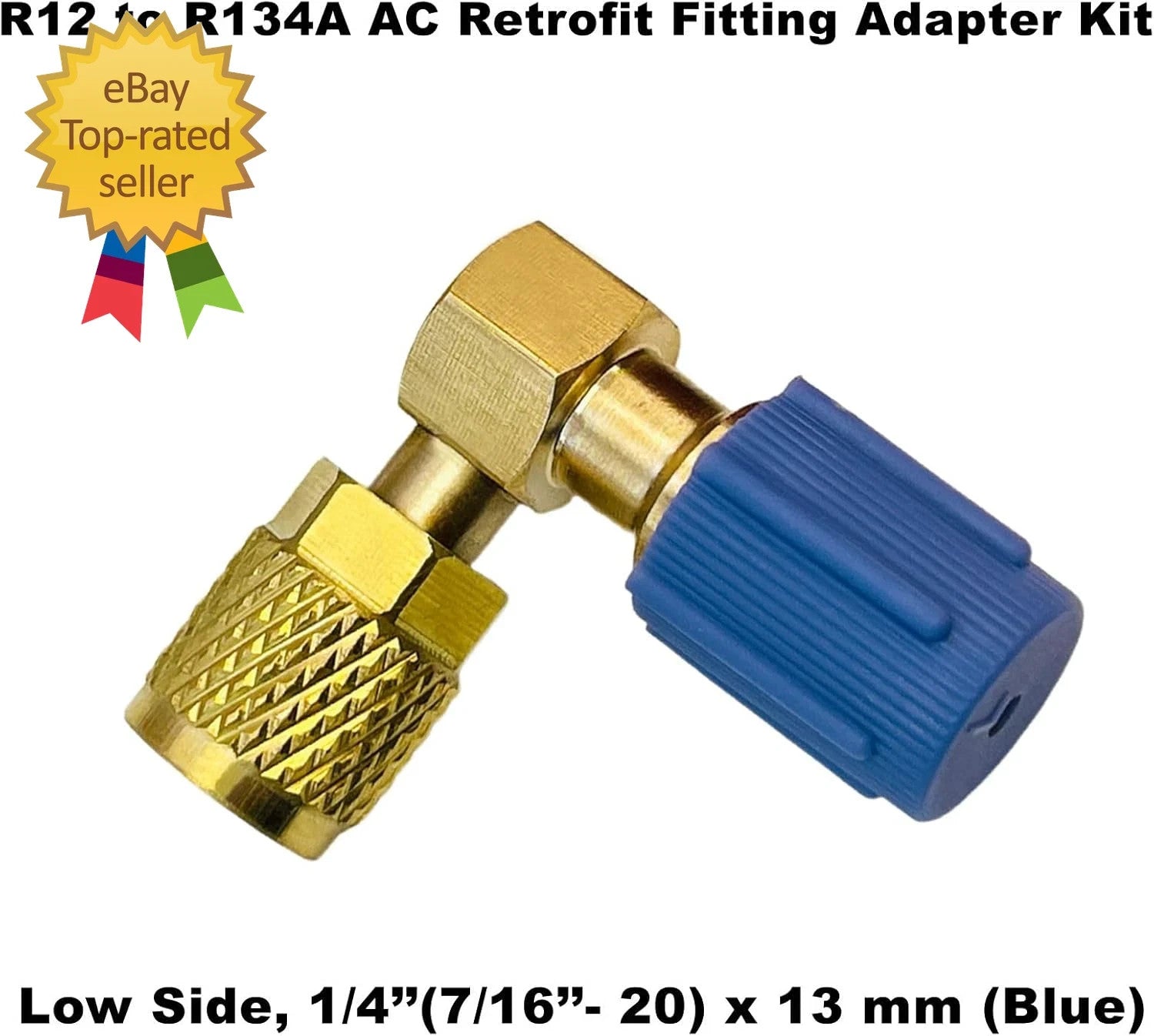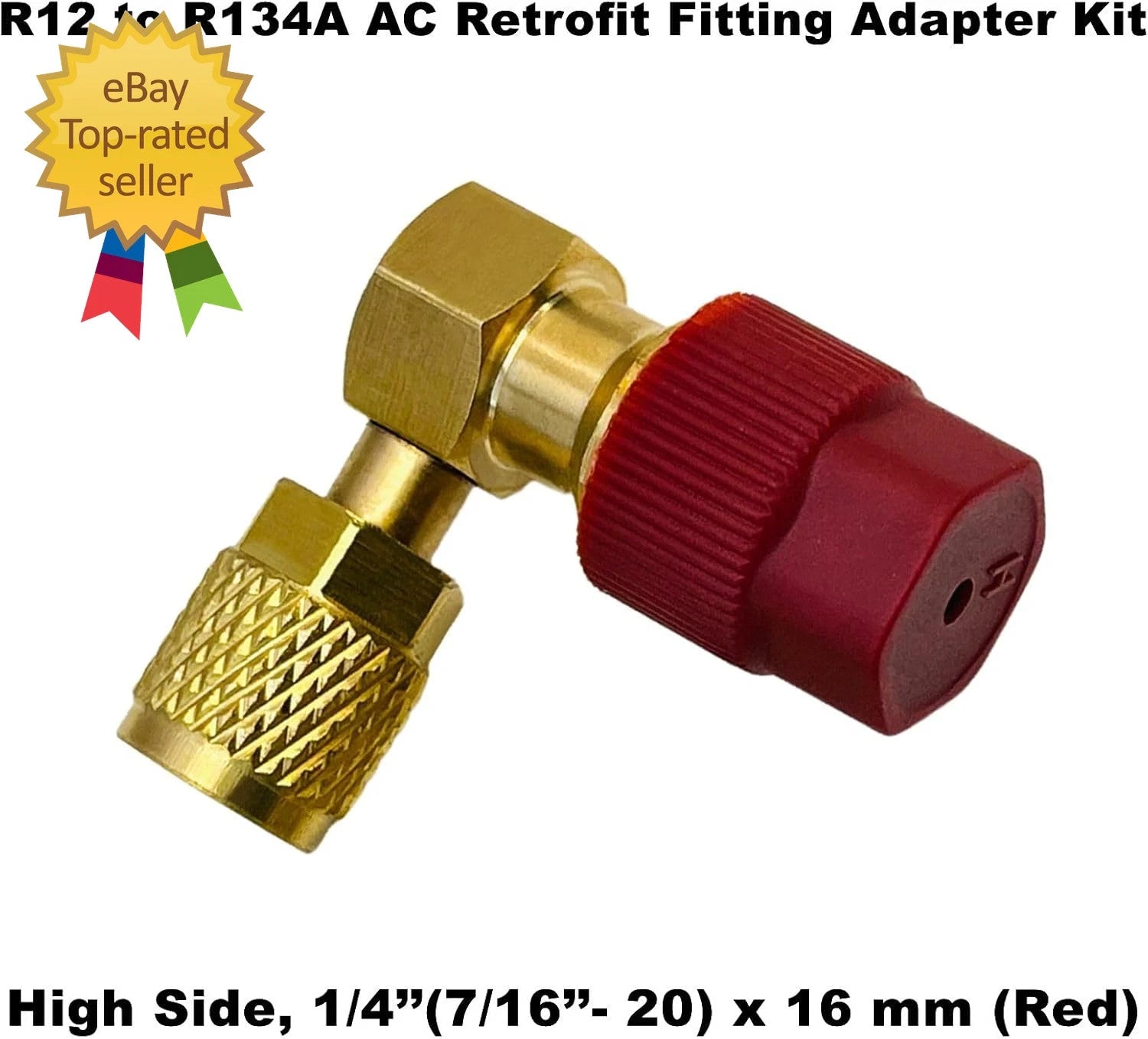 - 【DIMENSION】 - These Low/High side retrofits/adapters/fittings will convert your old 1/4’’ SAE or 7/16"-20 UNF R12 R22 charging port and make it accept the R134a quick disconnect hose. Low Side, 1/4’’(7/16’’- 20) x 13 mm (Blue). High Side, 1/4’’(7/16’’- 20) x 16 mm (Red).