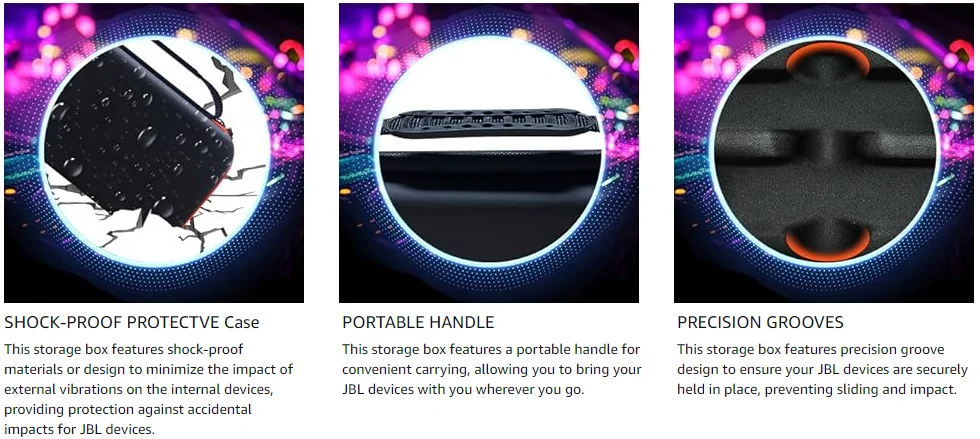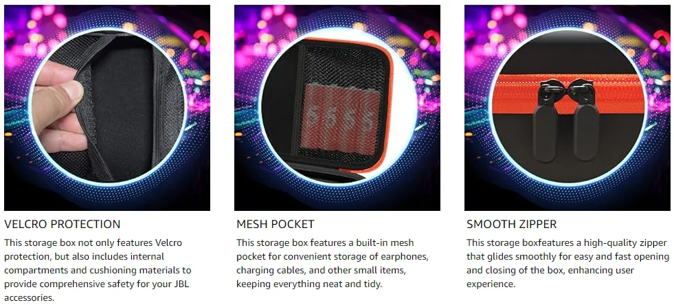 [Lightweight & Portable ] - Our carrying bag for JBL karaoke machine with 2 microphones includes two mesh pockets, each fastened with magic tape for secure storage of wireless receivers, adapters, AA batteries, data cables, and other accessories. This design is particularly useful for individuals needing to carry additional equipment for extended use, such as event organizers and sound technicians. External dimensions: 11*6*3.25 inch