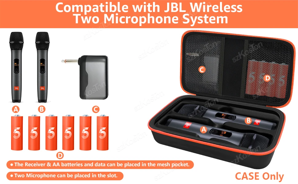 [Compatible with Wireless Microphones Case] - Specifically designed for JBL wireless two microphone system, our dual microphone storage bag offers separate spaces for two microphones, AA batteries, and data cables. It is perfect for musicians, speakers, and music-lovers who need to protect their gear when they're on the move. Note: only a cover, doesn't include other accessories.